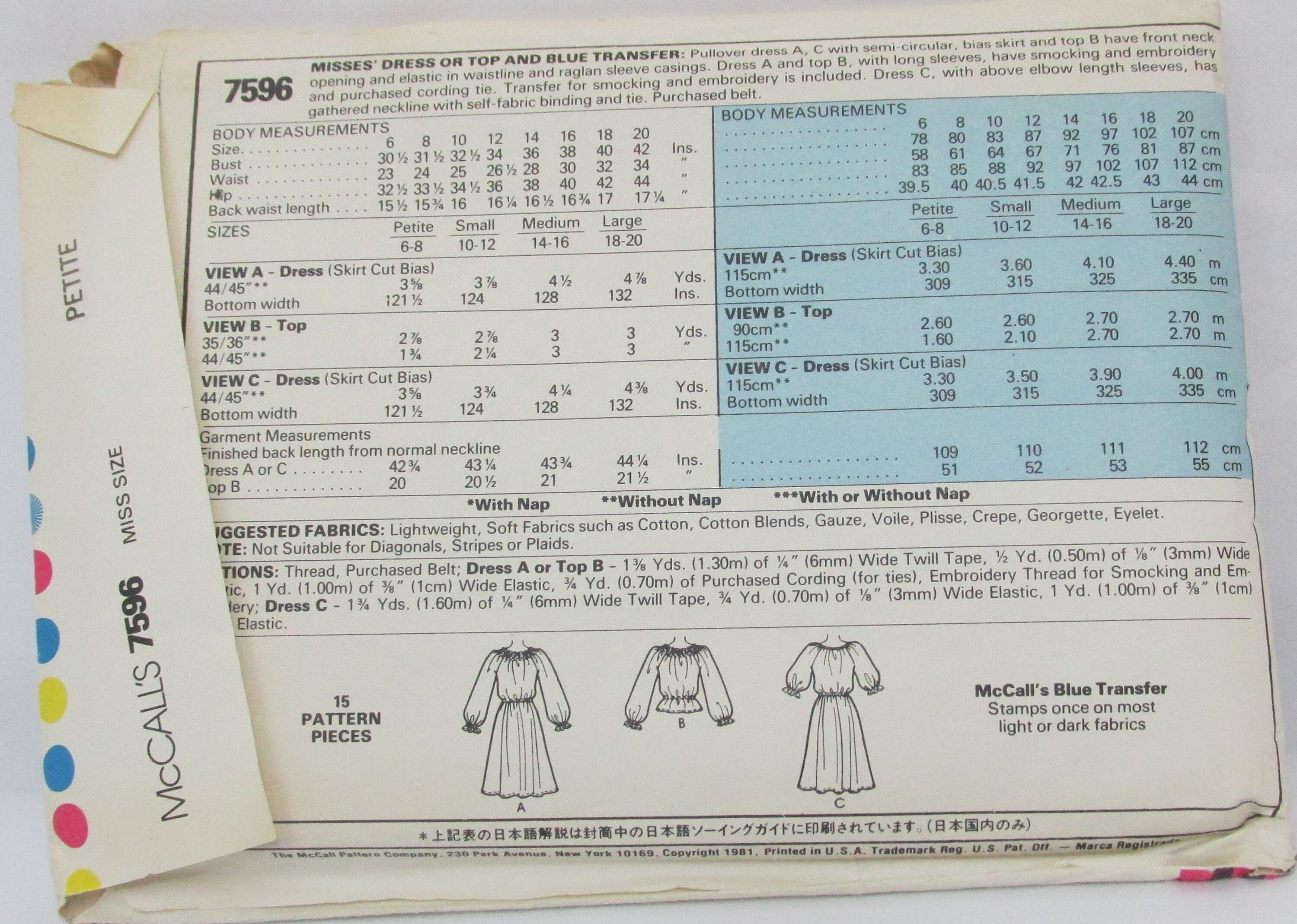 Buy Mccall S Sewing Pattern 7596 Misses Dress Or Top Size Online In India Etsy